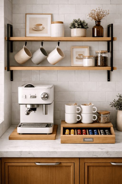 Aujourd’hui, en 2026, la coffee station est devenue un véritable élément de design intérieur, au même titre que les reading nook ou les beauty corners. Elle s’intègre pleinement dans les tendances déco actuelles.