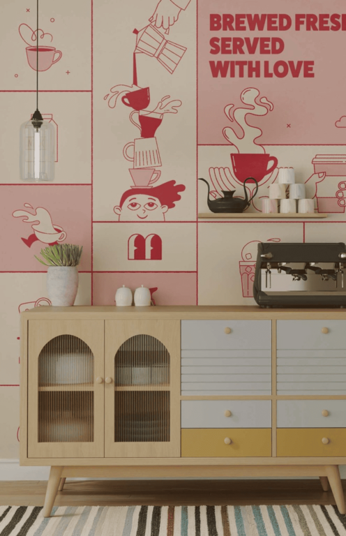 Le papier peint pour coin café est aujourd’hui l’un des éléments les plus utilisés dans les coffee stations modernes.
