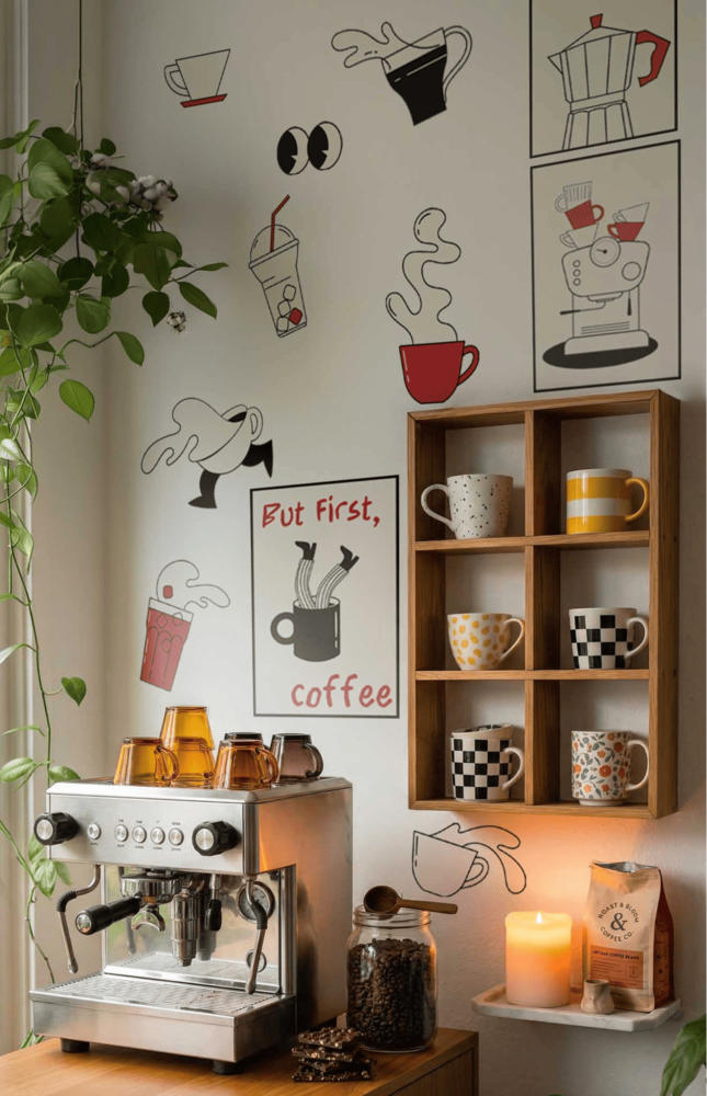 Dans une tendance où chaque détail compte, le mur derrière votre coffee station devient un véritable terrain d’expression. C’est lui qui attire le regard, structure l’espace et donne une identité forte à votre coin café.