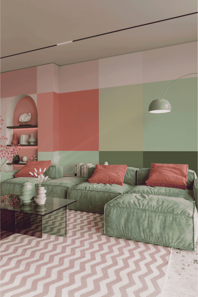 Le trio rose, vert et turquoise donne du pep’s à n’importe quelle pièce.