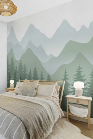 Green is versatile: lighter tones brighten small spaces, while darker shades create cosy, dramatic vibes. Use them in bedrooms for relaxation, living rooms for sophistication, or bathrooms for a spa-inspired sanctuary. Pair leafy botanicals with minimal furniture for a natural look, or go bold with geometric green patterns for a modern statement wall.