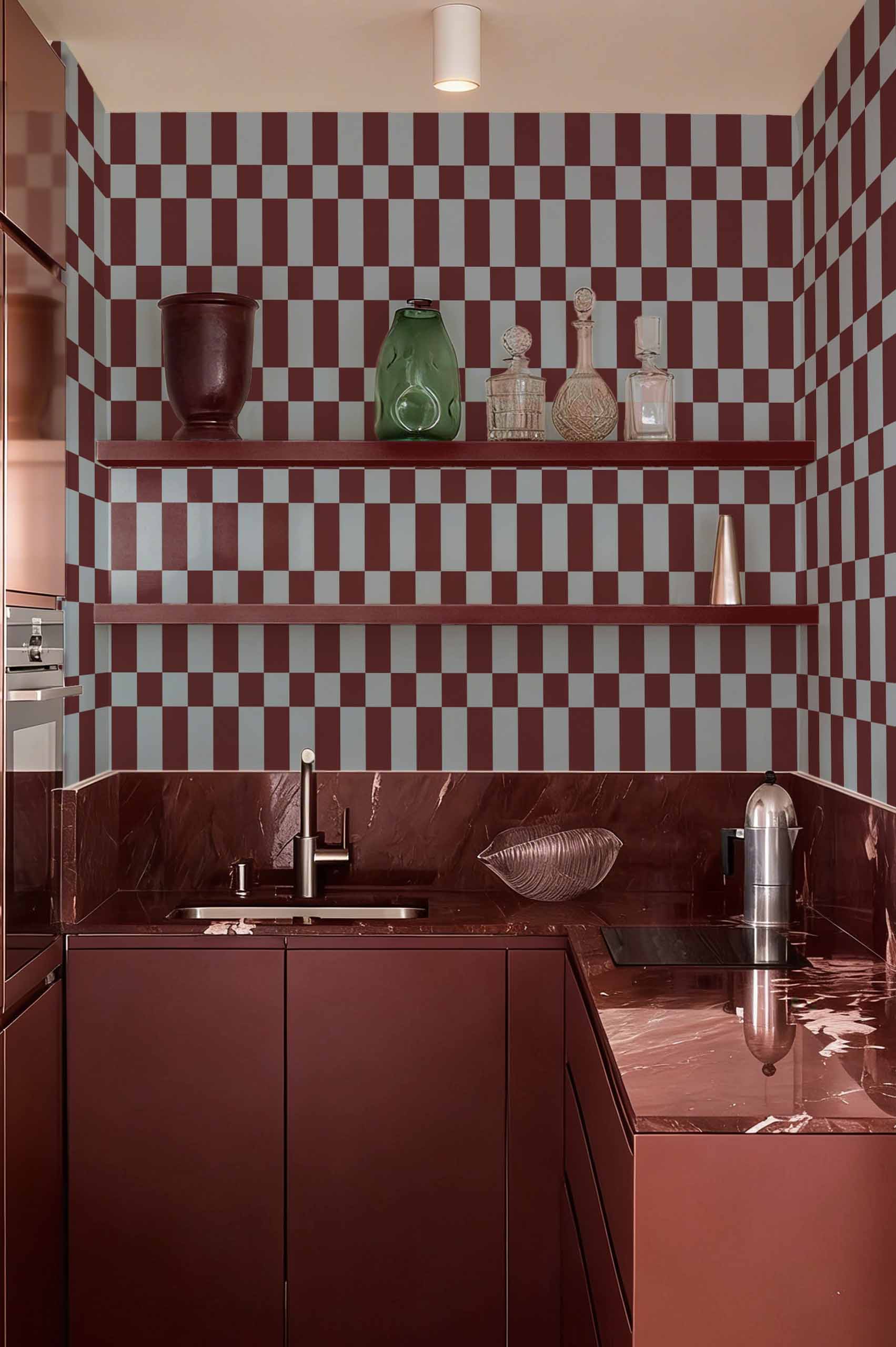 Welcome to the captivating world of “Electrifying Chessboard”! This wallpaper, with its distended checkerboard pattern, will not only energize your walls, it will immerse you in an atmosphere that is both retro and resolutely contemporary. Transform every room into a playful space, while regaining a touch of elegance. Available in color variations to fit your unique style!