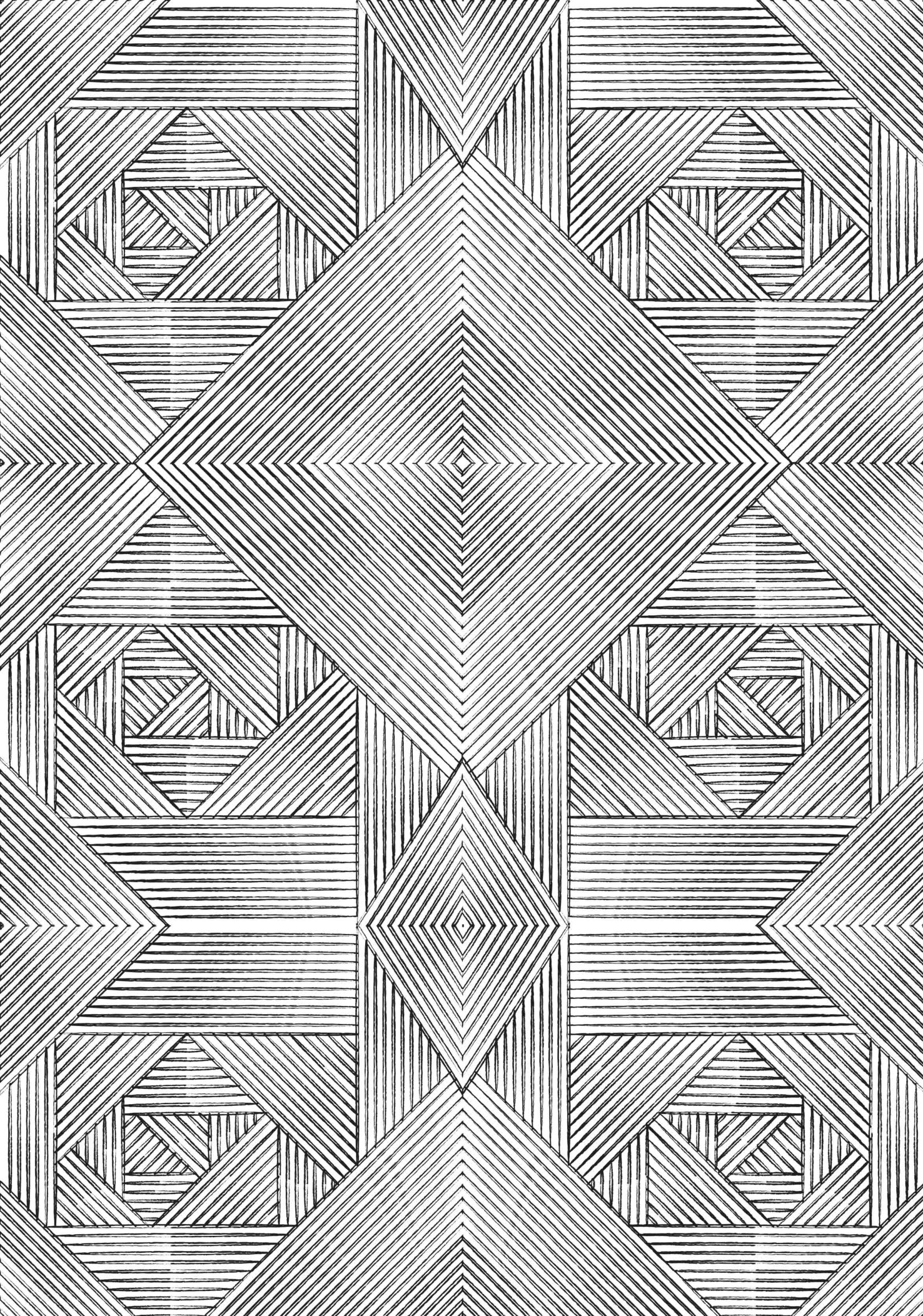 The dynamic black lines on the white background create a striking contrast that is sure to be the focal point of any room. The art of illusion is skilfully captured in this wallpaper, where every angle offers a new perspective, evoking curiosity and stimulating the imagination.