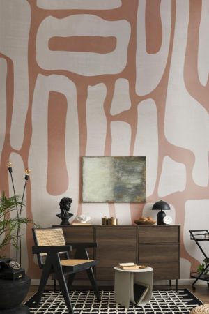 Papel pintado terracota minimalista: con líneas limpias y formas abstractas para un interior contemporáneo y elegante.