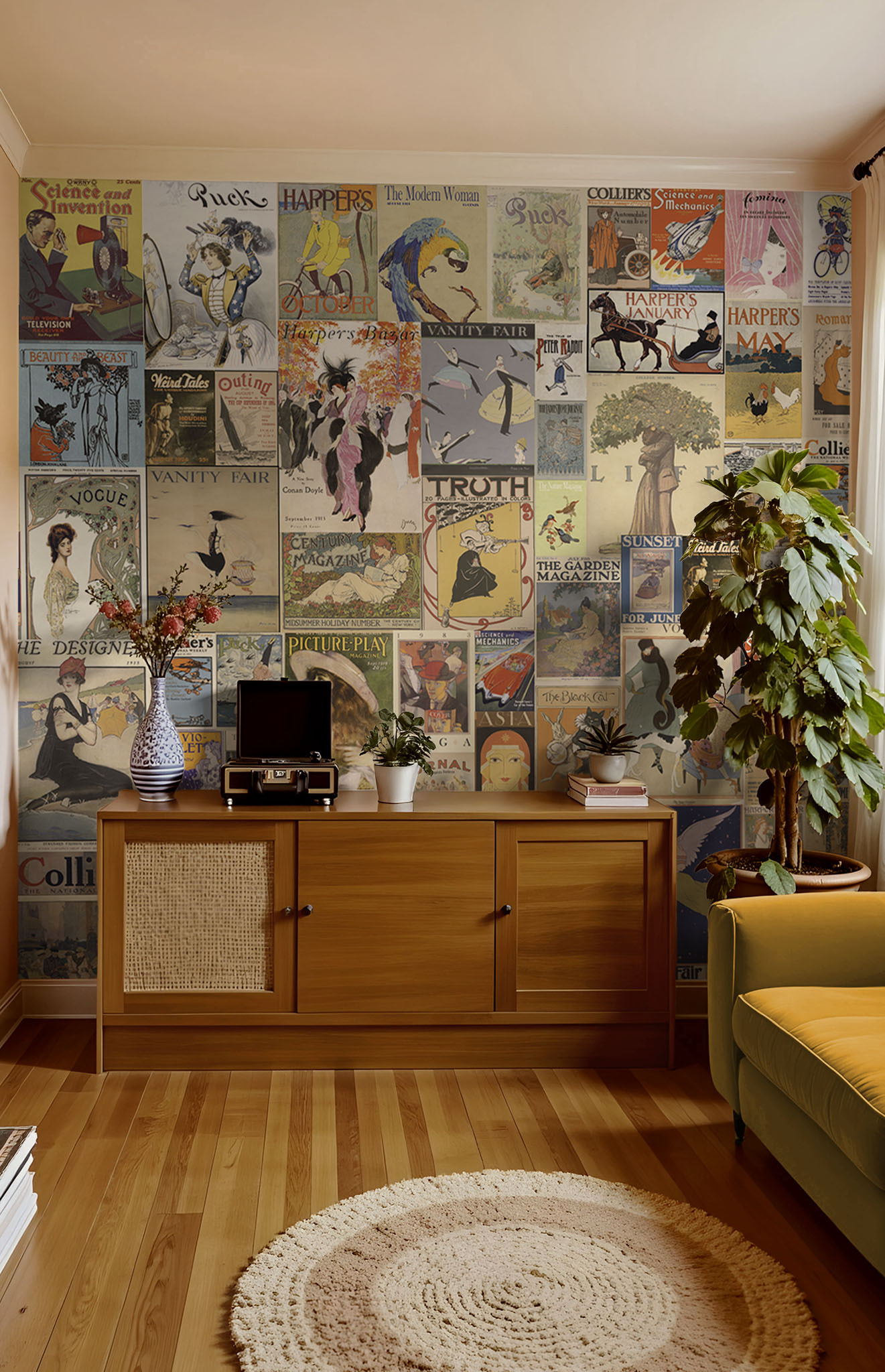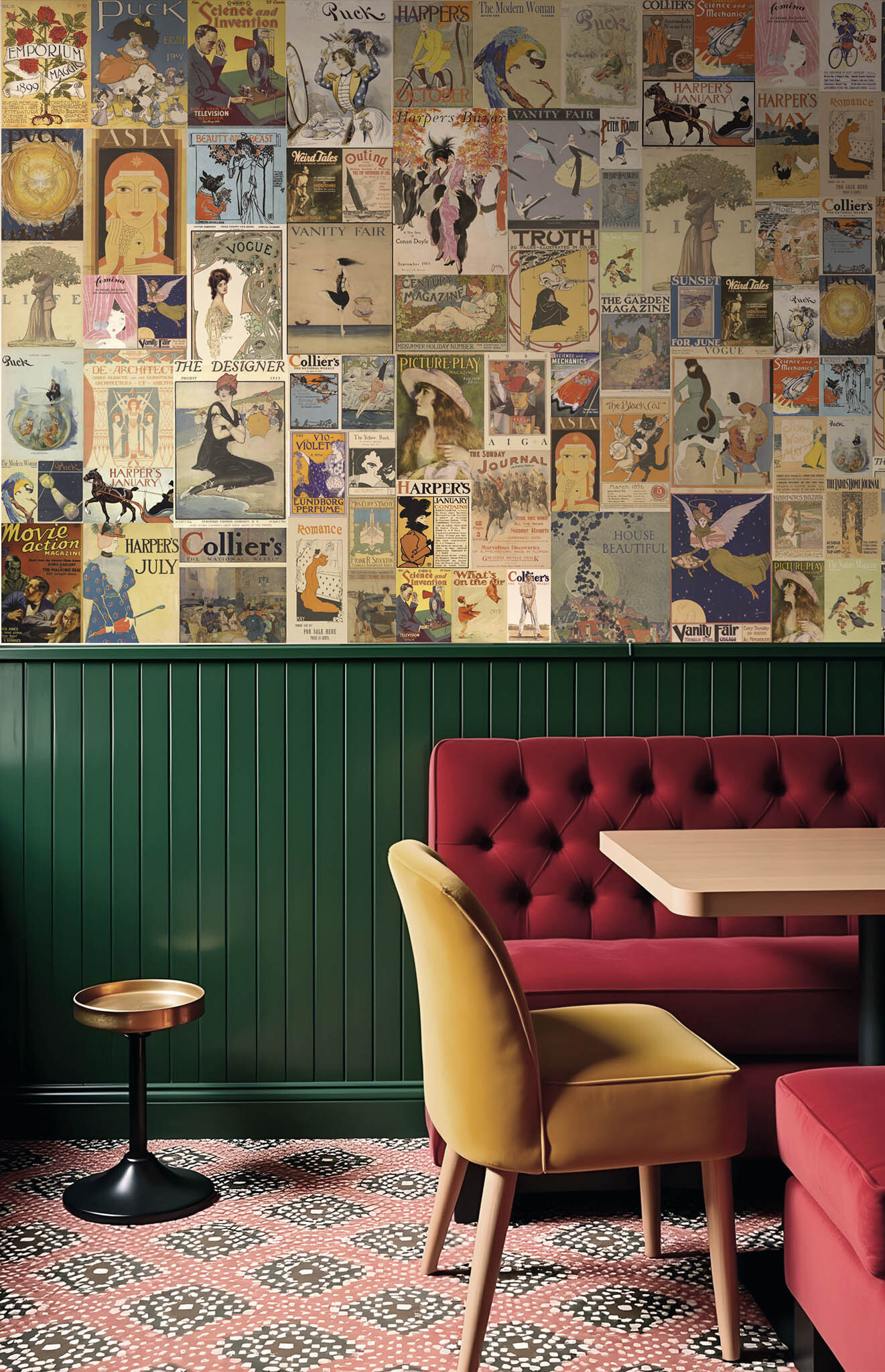 ¡Añade un toque de historia a su decoración con nuestro papel pintado «Crónicas Art Nouveau»! Inspirado en el encanto de los antiguos carteles publicitarios revisitados con un toque art nouveau, este motivo juega con composiciones gráficas dinámicas e ilustraciones icónicas. Este atrevido diseño es ideal para cualquier persona que quiera convertir una simple pared en una galería de arte. Perfecto para una sala de estar, un dormitorio o una oficina, este papel pintado le permite agregar alegría y brillo a cualquier habitación.