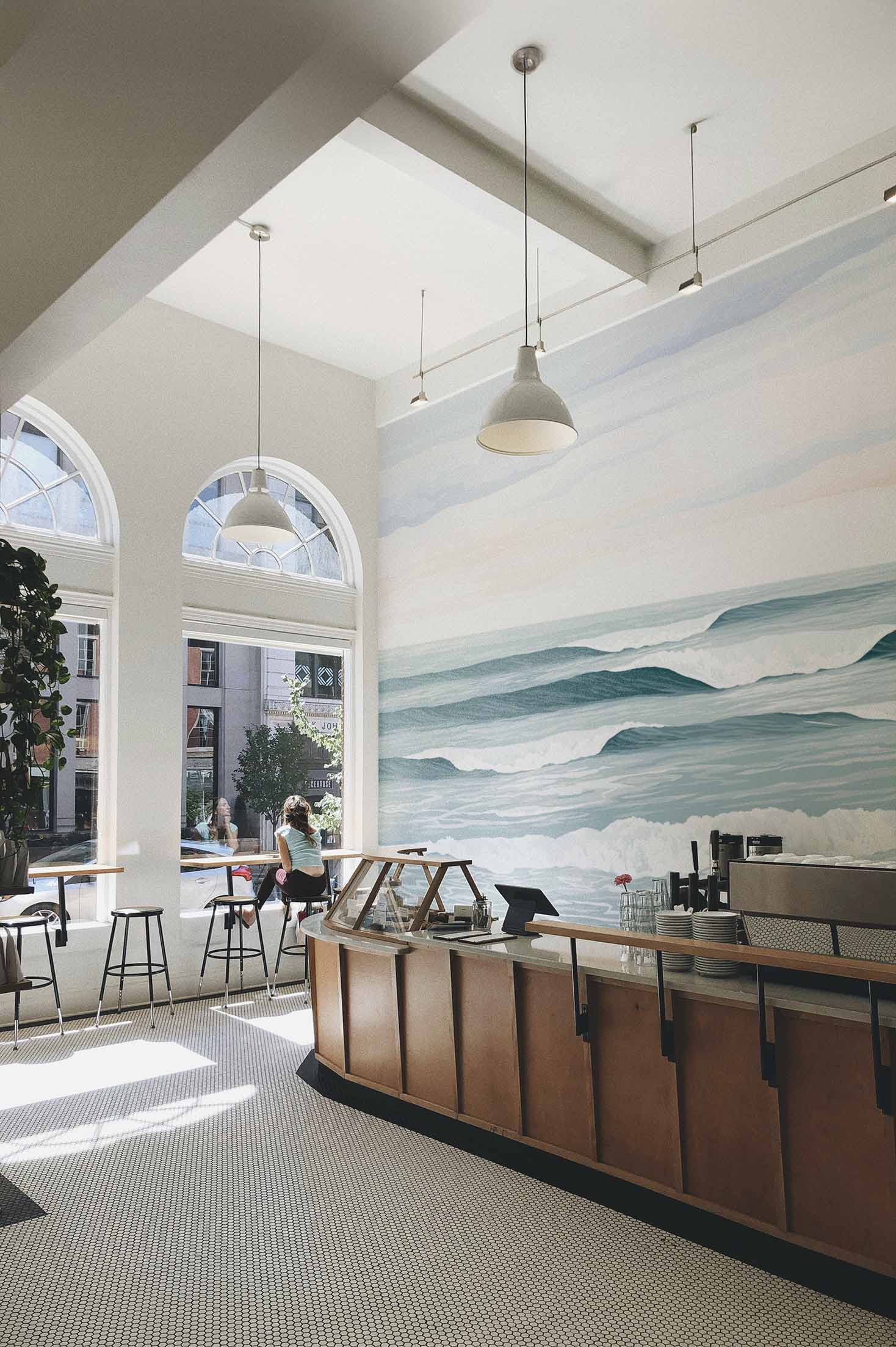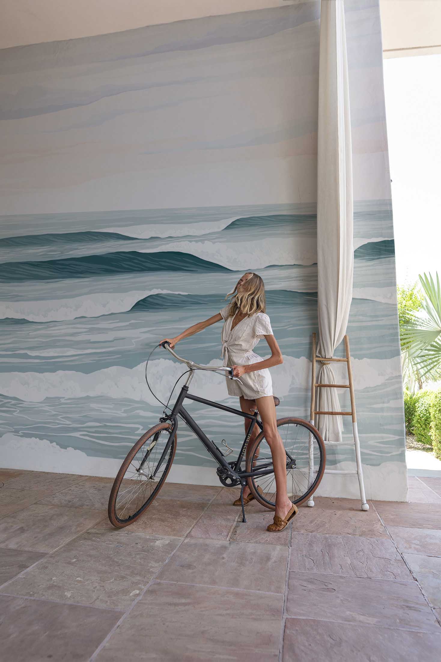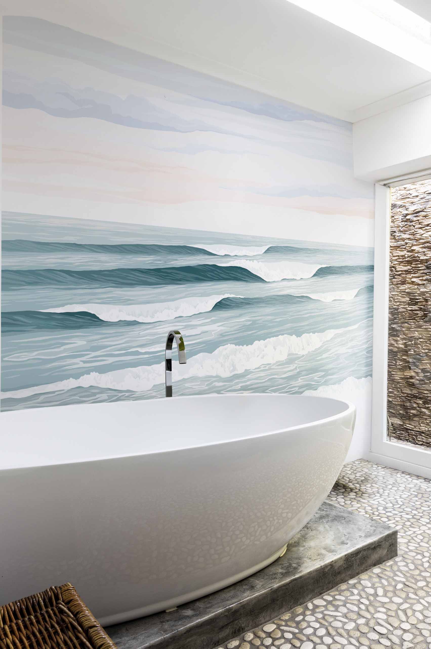 Marine de inmersión te lleva a sus olas, frente a la costa, entre tonos de azul antracita hasta donde alcanza la vista. Te sumerge en una contemplación reconfortante y aporta suavidad a tu interior gracias a una paleta de colores pastel y delicada. Este papel pintado panorámico, imaginado y diseñado por Elodie Perrier, será perfecto para un dormitorio, un espacio de trabajo o un baño. Solo tienes que dejarte volcar.