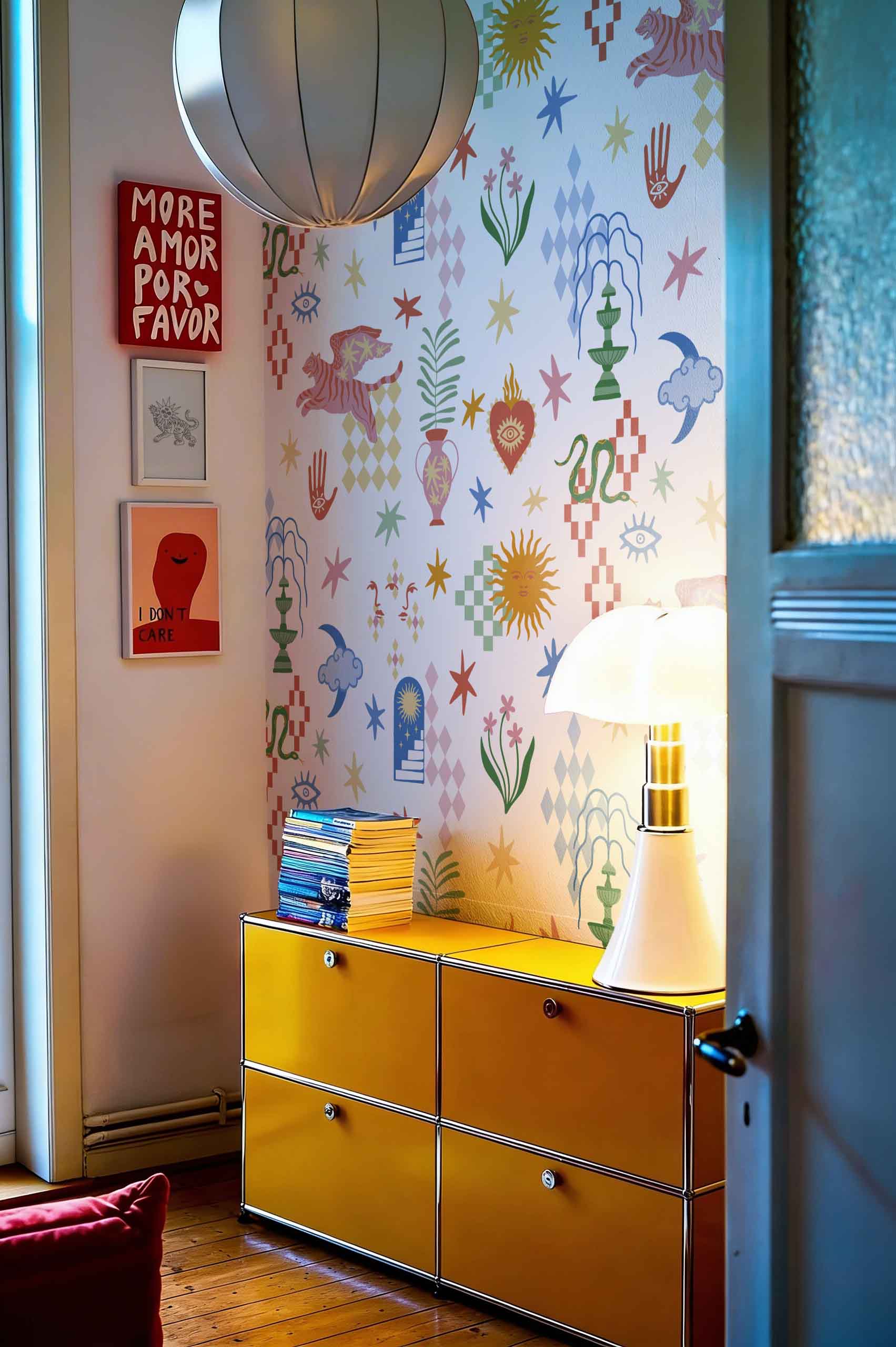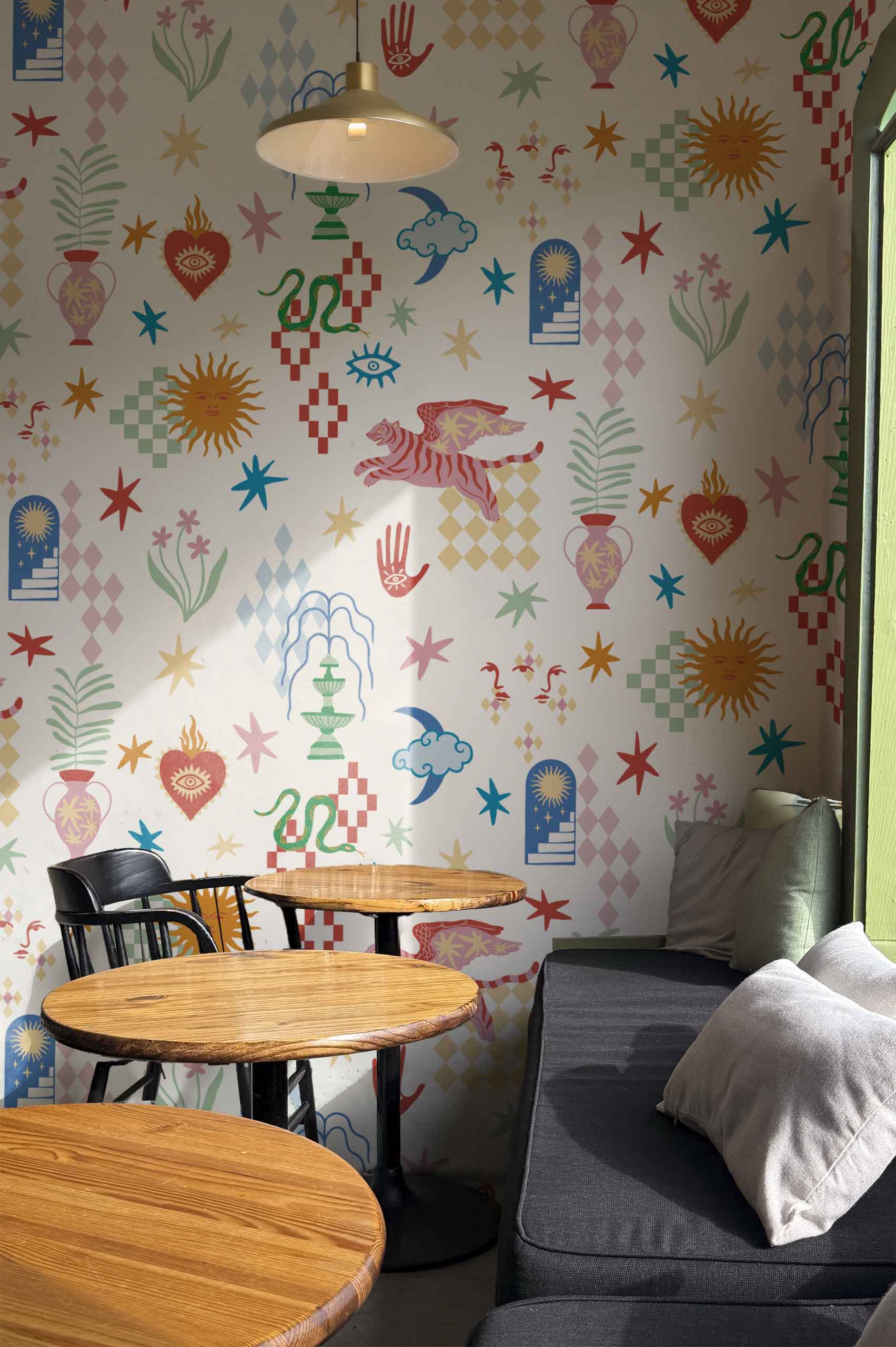 ¡Atrévete a ser extravagante con nuestro papel pintado «Dopamine Garden»! Este diseño loco y vibrante combina símbolos místicos y patrones lúdicos para encantar tus paredes. Entre los jarrones florales y las estrellas titilantes, cada elemento responde entre sí y se agita como una fiesta en tu salón o en tu oficina. Despídete del aburrimiento, este papel pintado es el compañero perfecto para añadir un toque de originalidad a tu decoración. Disponible en variaciones de colores llamativas: rosa, multicolor, morado e incluso amarillo, se adapta a todos tus deseos. Sin pensarlo dos veces, transforma tu espacio y deja que tu creatividad hable.