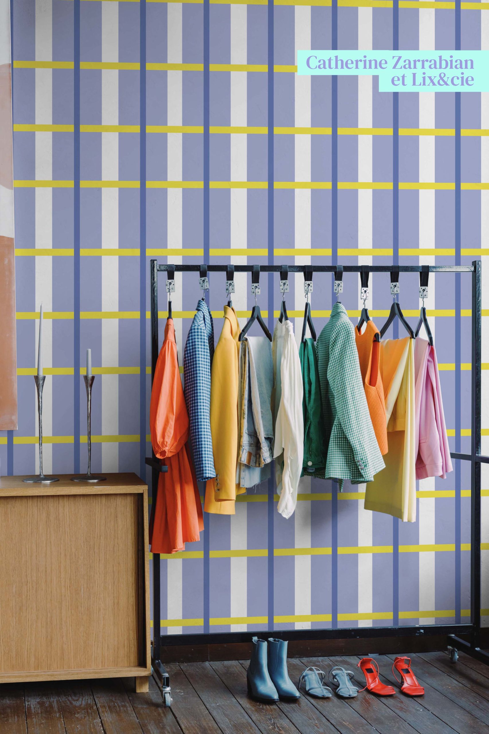 Un patrón de rayas de estilo inglés con colores explosivos, la combinación perfecta para vestir tus paredes.