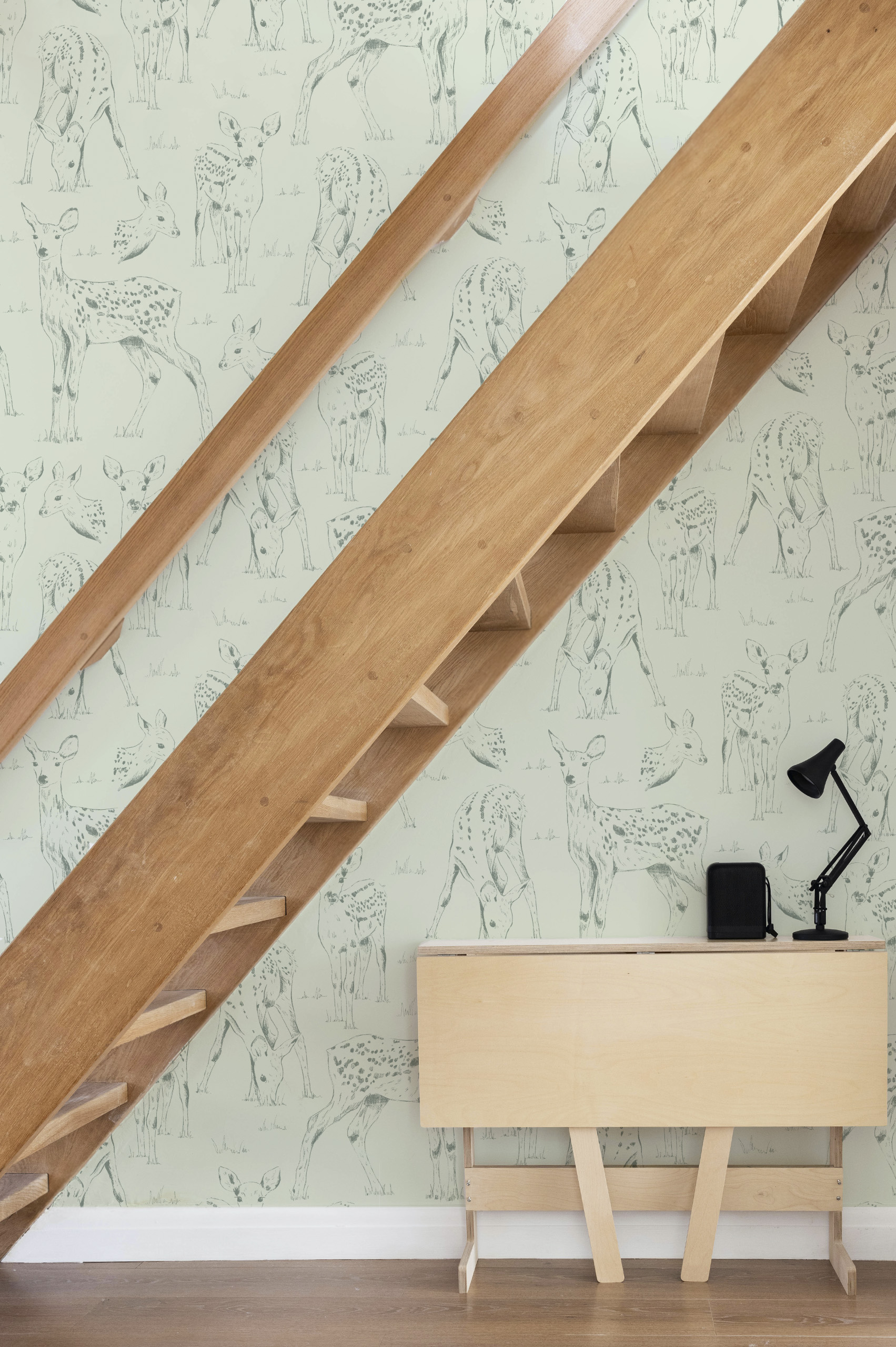 Invitez la douceur de la nature avec le papier peint ‘Bambi Verdoyant’ – une esquisse champêtre pour un havre de paix chez soi.