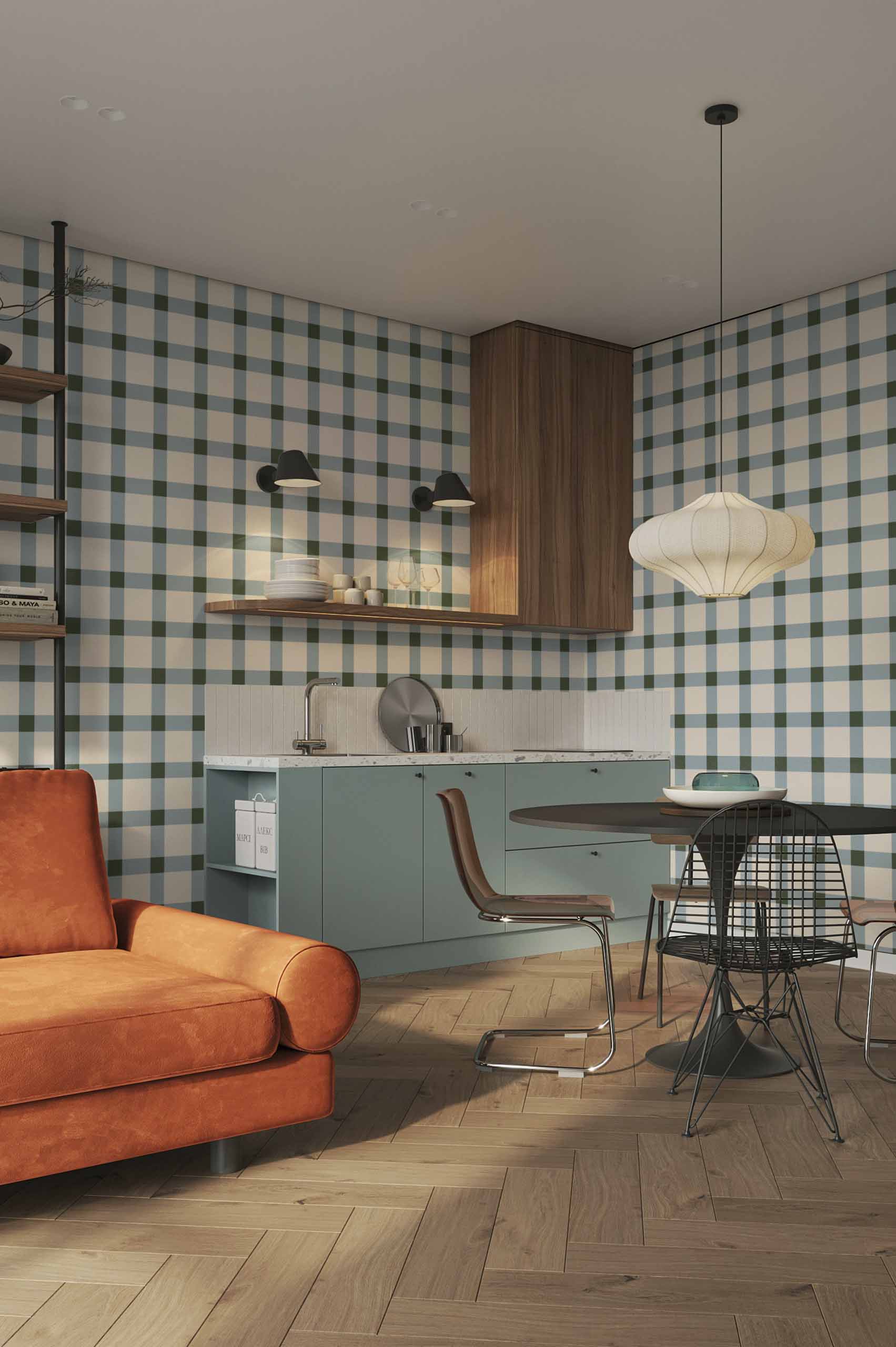 Découvrez notre papier peint « Check it Out! », un festin pour les yeux et un appel à l’audace ! Ce motif à carreaux revisite avec panache un classique du design intérieur. Les formes géométriques et l’alternance savamment rythmée entre clarté et profondeur apportent une véritable dynamique à votre espace. Que ce soit dans votre salon, votre bureau ou même votre cuisine, ce style emblématique ajoute une touche de personnalité à chaque mur. Amateurs de styles modernes ou rétro, vous serez séduit par la versatilité qu’offre ce design. Disponible en plusieurs coloris pour satisfaire toutes vos fantaisies, du rose apaisant au vert pétillant, en passant par un bleu doux plein de fraîcheur.