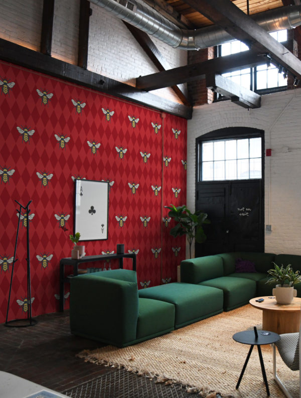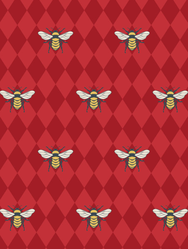 Le papier peint « La Reine » est une célébration royale de la nature et du luxe. Sur un fond rouge audacieux, des abeilles dorées scintillent, apportant un éclat de noblesse à votre espace. Chaque abeille, méticuleusement dessinée, est un hommage au travail d’équipe et à la diligence, et leur présence sur le motif à losanges crée une impression d’opulence et de pouvoir.
