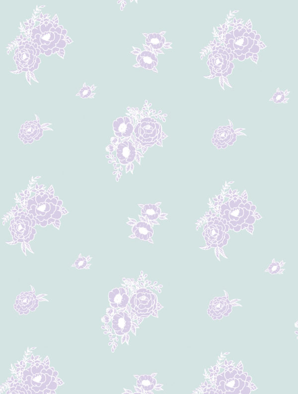 Caractéristiques du papier peint – Fleurs Mint & Lila –