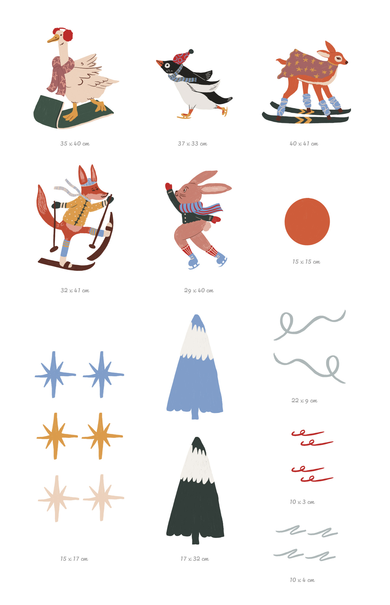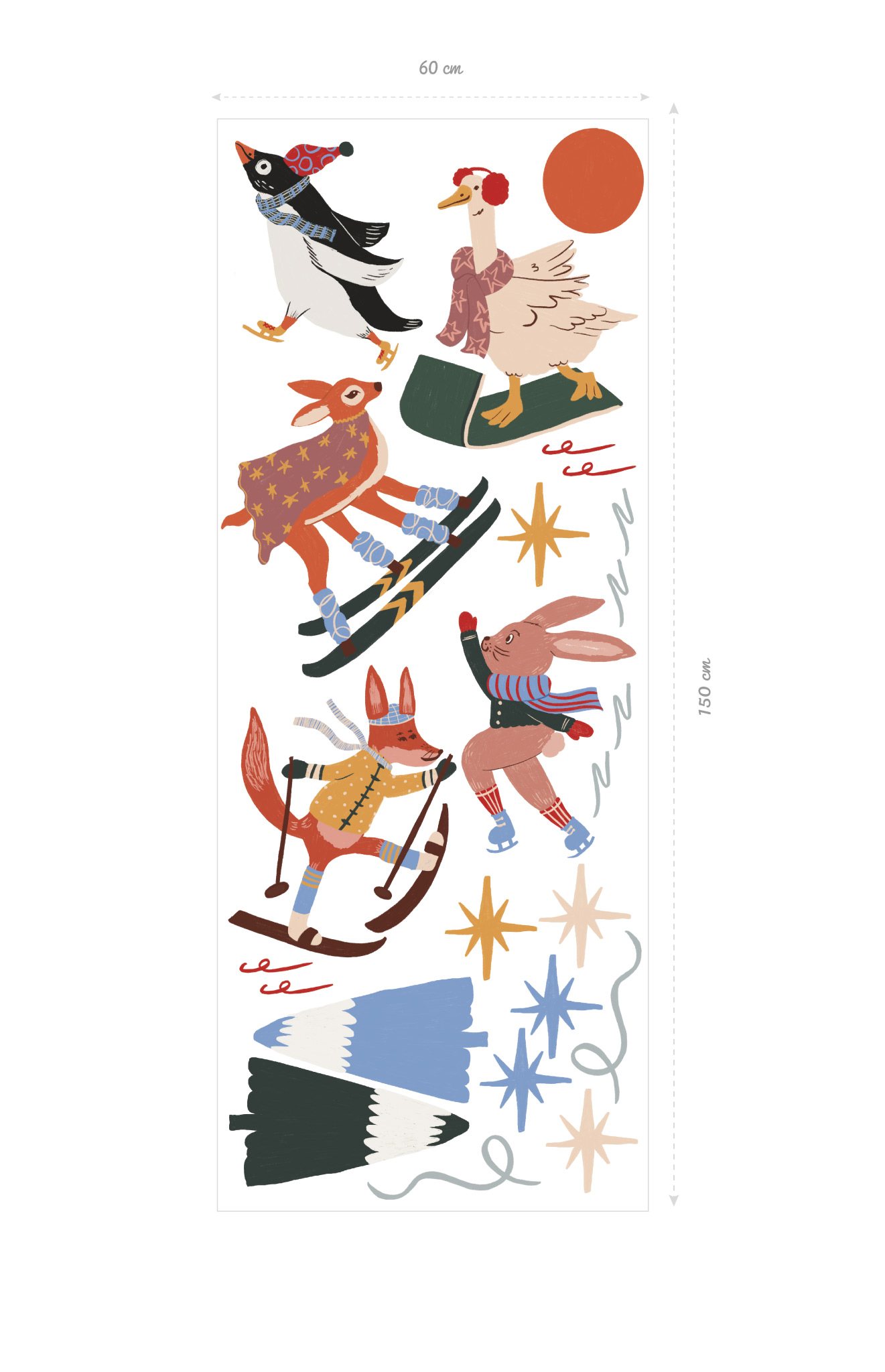 Plonge dans un hiver beaucoup trop cool avec ces stickers muraux ! Entre le lapin patineur, le renard skieur et le pingouin stylé, ta déco va clairement devenir la plus fun de la saison. Un mix d’animaux givrés et d’éléments graphiques qui mettent instantanément le smile.