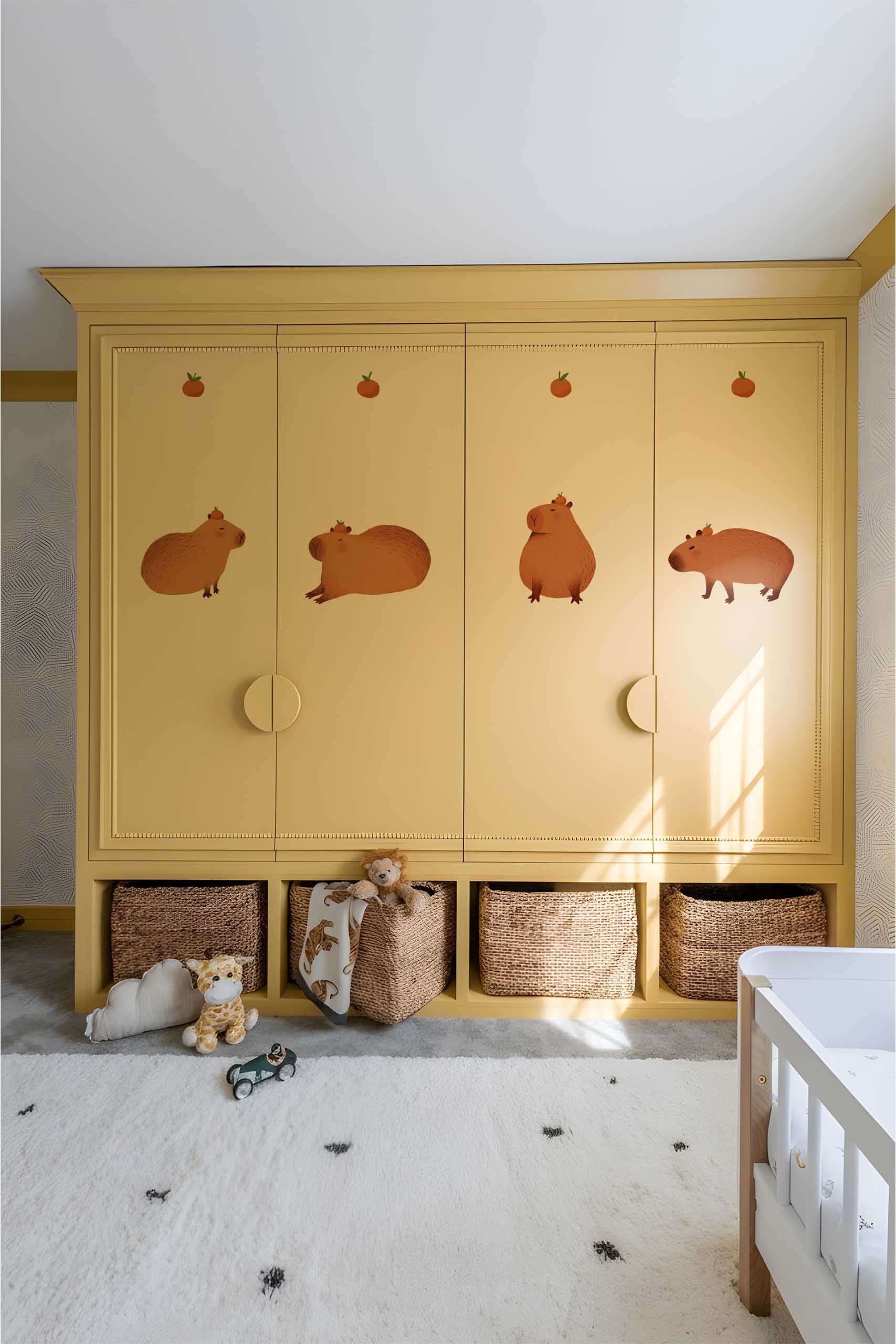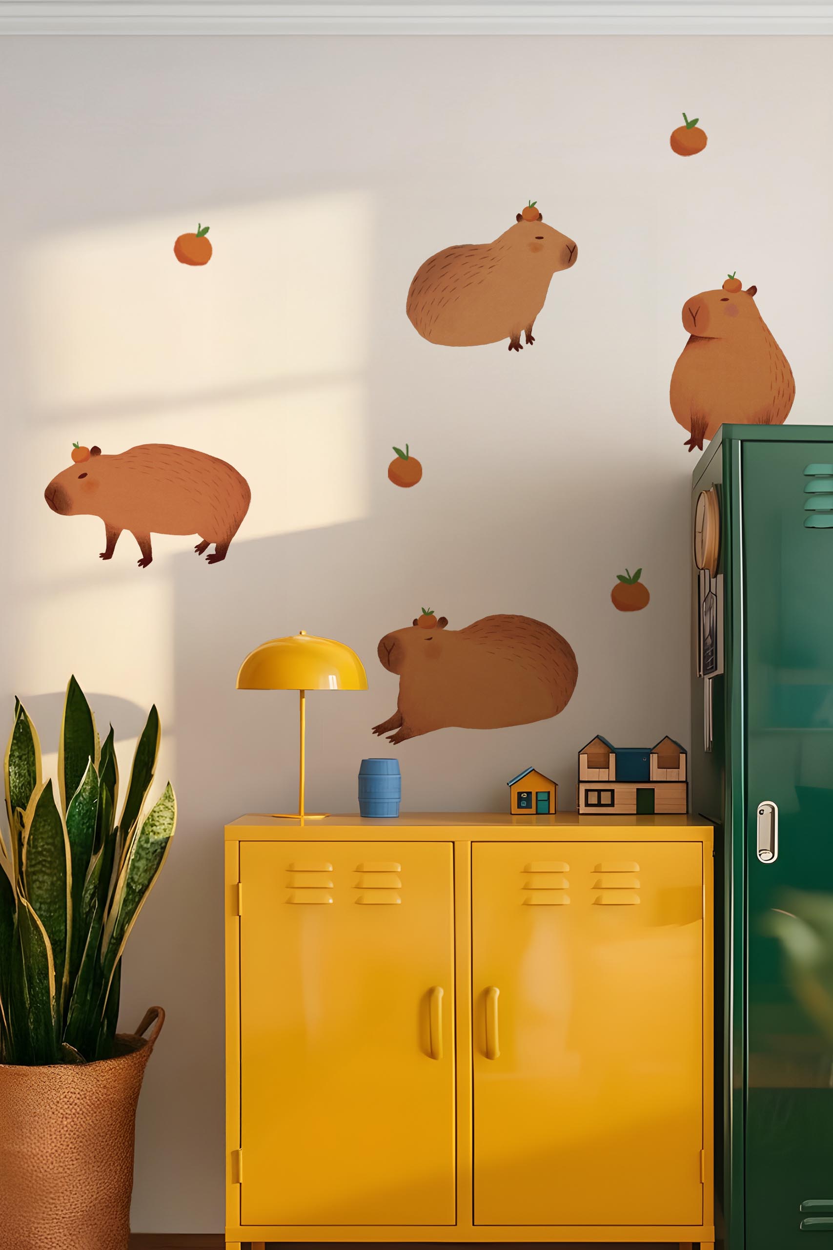 Le pack de stickers muraux Capybara Club propose une décoration douce et apaisante inspirée de l’animal le plus chill du règne animal. Composé de plusieurs capybaras illustrés dans différentes postures, accompagnés de petites oranges décoratives, il permet de créer une scène murale chaleureuse et originale.