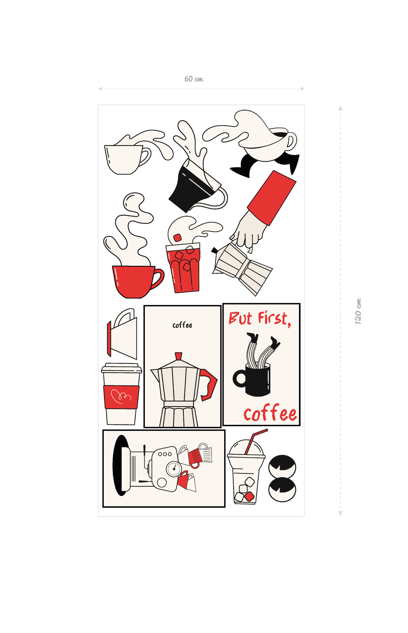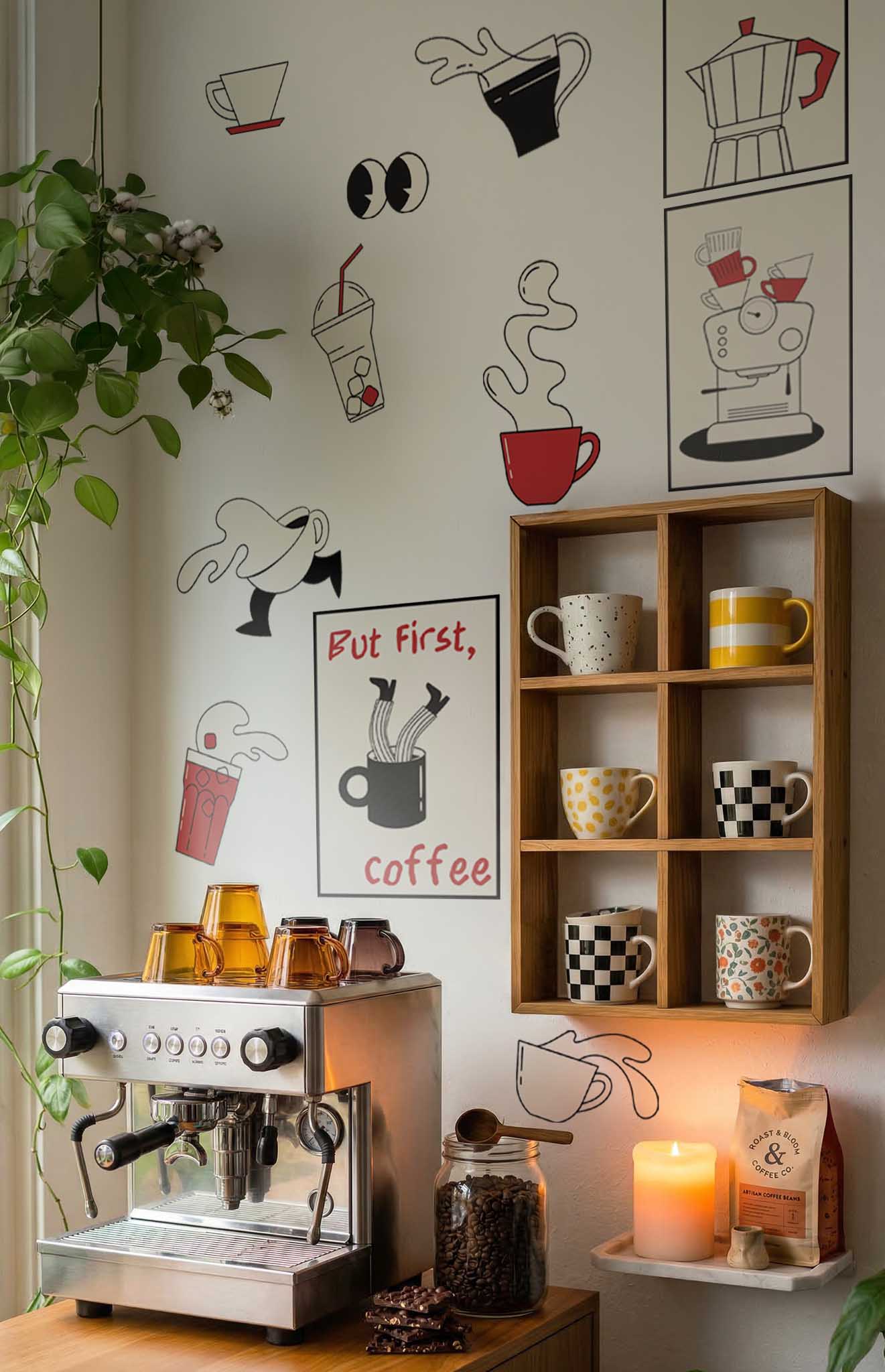 Le pack de stickers muraux Coffee Break est une collection d’illustrations inspirées de l’univers du café, mêlant humour, mouvement et design graphique. Tasses en action, café qui déborde, machine à espresso et messages iconiques : ce pack apporte une ambiance conviviale et moderne.
