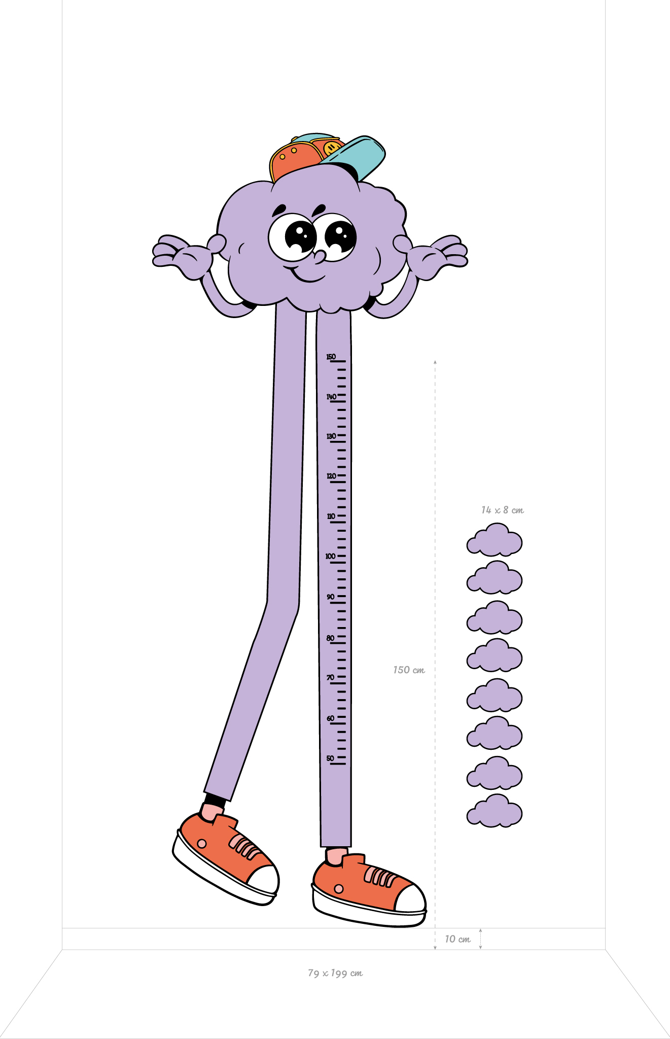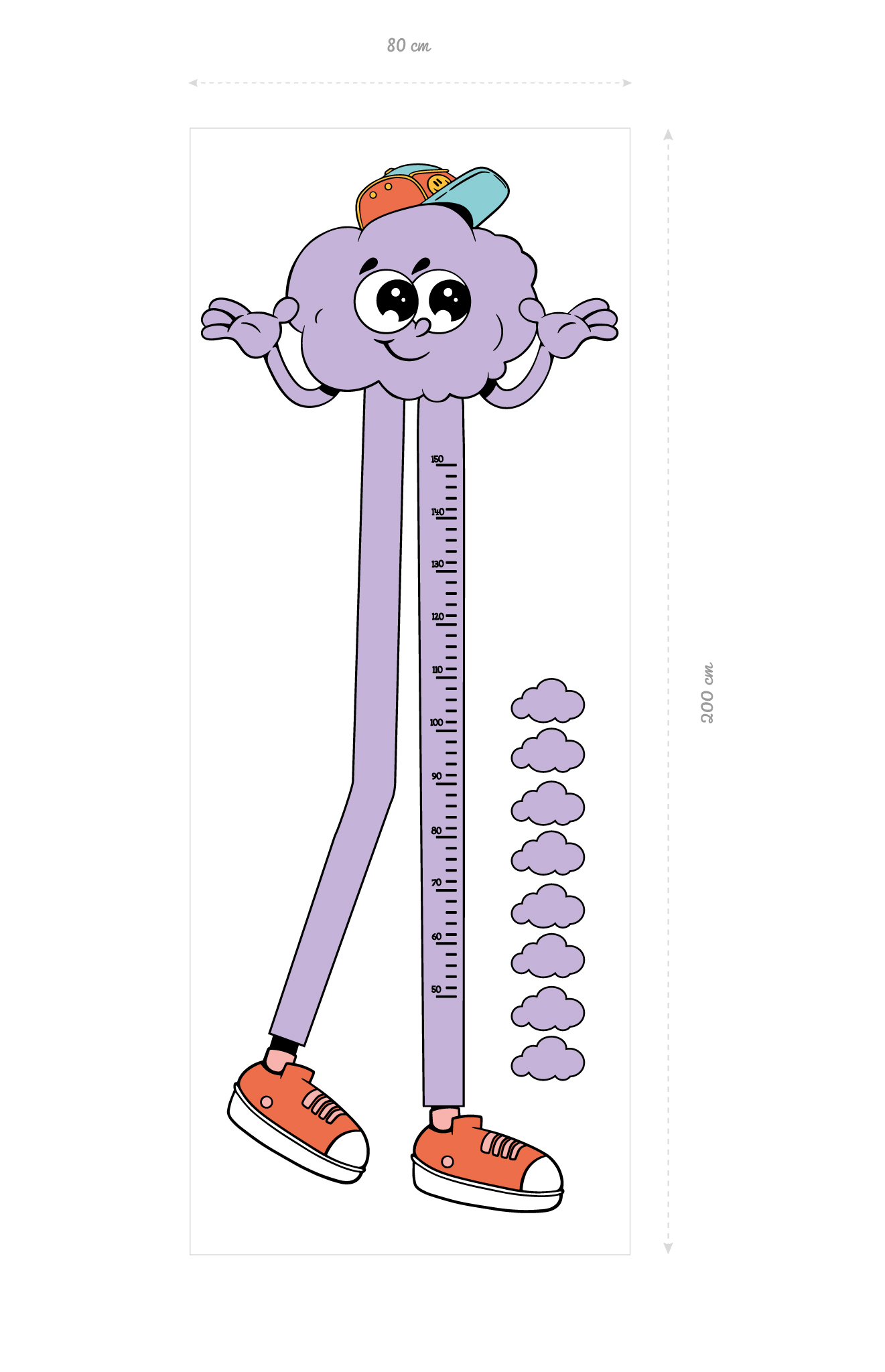 Avec sa casquette, ses jambes longues et ses baskets cool, ce sticker mural toise nuage apporte une touche fun et colorée à la chambre.